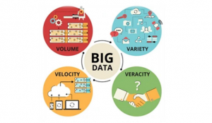 هناك أربع خصائص رئيسية يشار إليها أحيانًا بالأبعاد الأربعة للبيانات الضخمة وهي: الحجم والسرعة والتنوع والصدق.